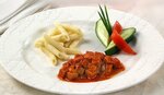 Печень куриная с запеченными овощами